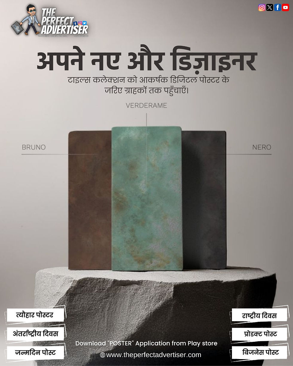 High-Definition Product Showcases: We provide daily posters featuring stunning textures—from matte-finish vitrified tiles to high-gloss Italian marble patterns—designed to look premium on any screen.